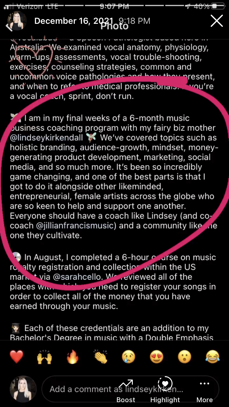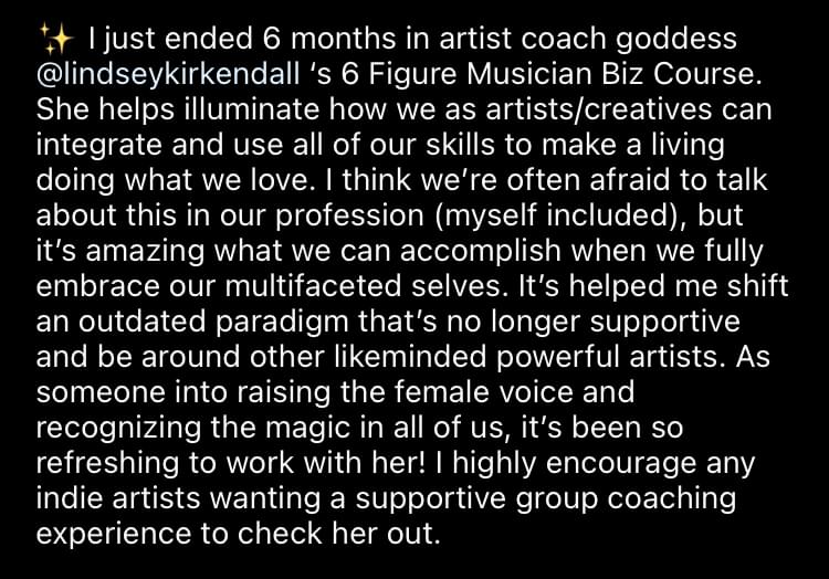 Some ways that clients have funded their investments in the past have been: taking on some extra work for a short time to save up, utilizing a line of credit or credit card, taking on an investor, loan or gift from parents, grandparents, extended family or even fans! The sky's the limit and you get to decide. If this program is right for you- you'll feel it in your gut and you will find a way... savvy artists + entrepreneurs always do. 💜