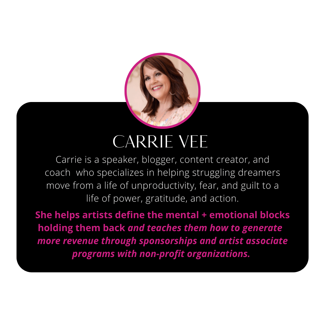 There is nothing else like this program on the market today that is showing artists how to create profitable businesses with their artistry + personal brand. If an investment of $3K will help you yield a monthly income of $2K-$15K or more, does that seem like a fair exchange? Can you re-frame the voice in your head that says: "You can't afford that" to say "How can we make this work" instead?